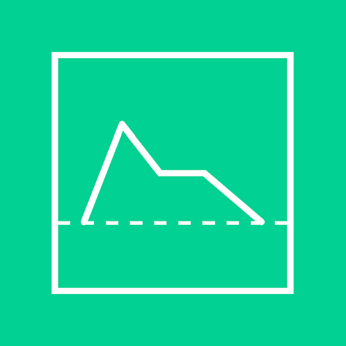 Other times, the dashed line shows the original path of the voltage before that module has modified it. For example, a ‘lag’ or ‘slew limiter’ smoothes out sudden changes in voltage. Therefore, we use a dashed line showing a sudden rise in voltage, and a solid line showing the resulting smoothed-out transition, inside the diamond symbol for a CV Modifier.
