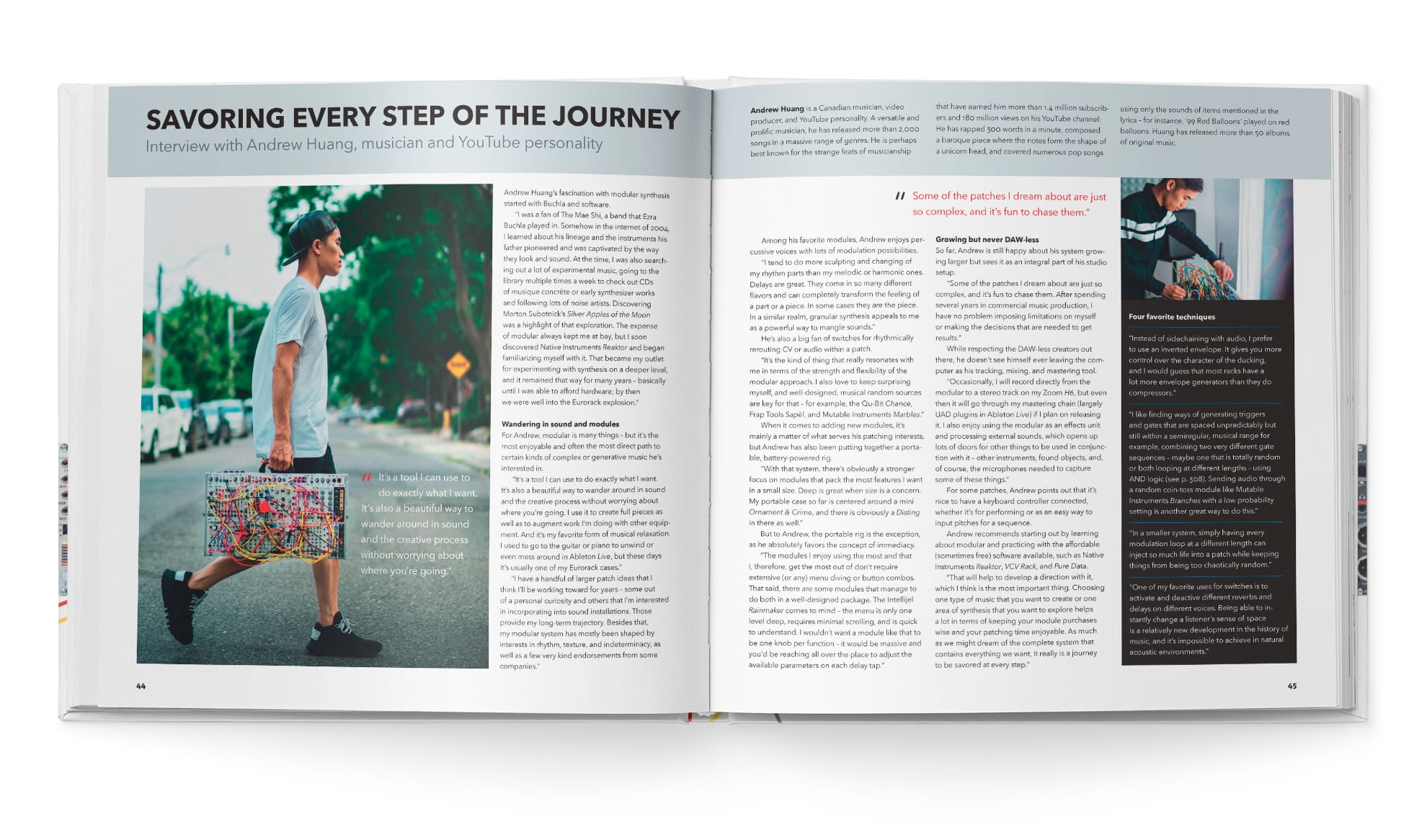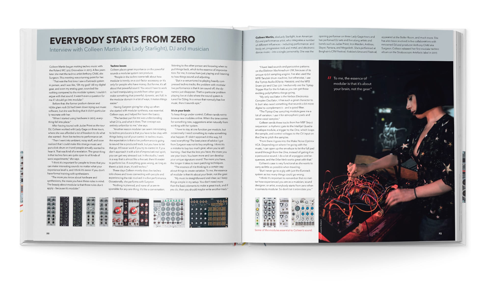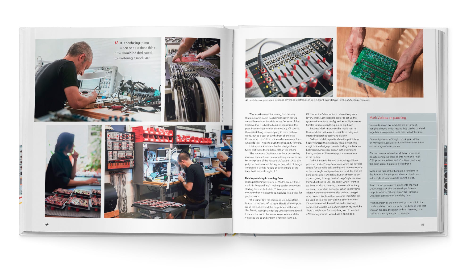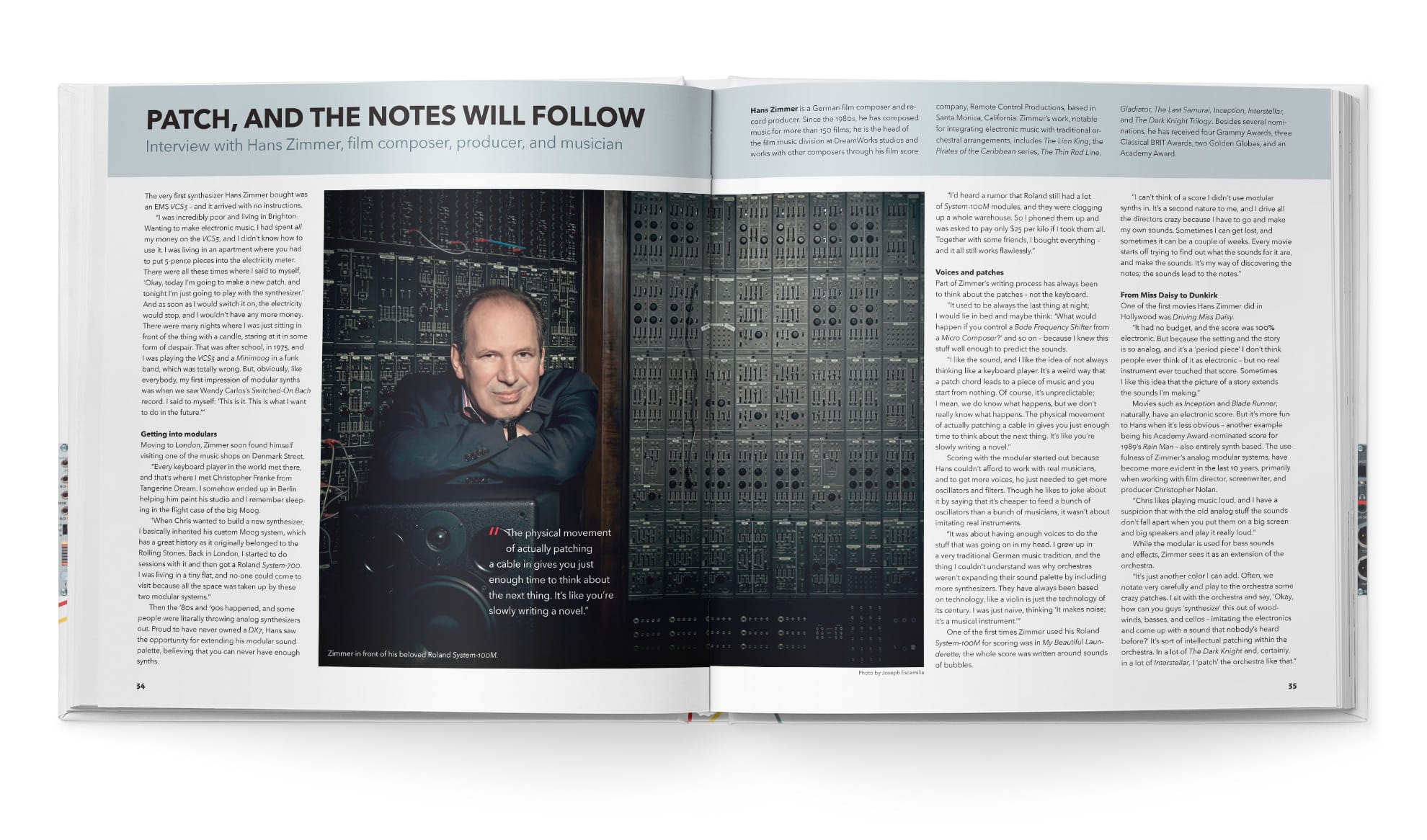 That’s why we structured Patch & Tweak around exploring modular synthesis rather than just learning it. The book includes 38 interviews with artists from various genres – generative ambient composers, hardcore techno producers, and even film composers like Hans Zimmer. We also included perspectives from instrument manufacturers.