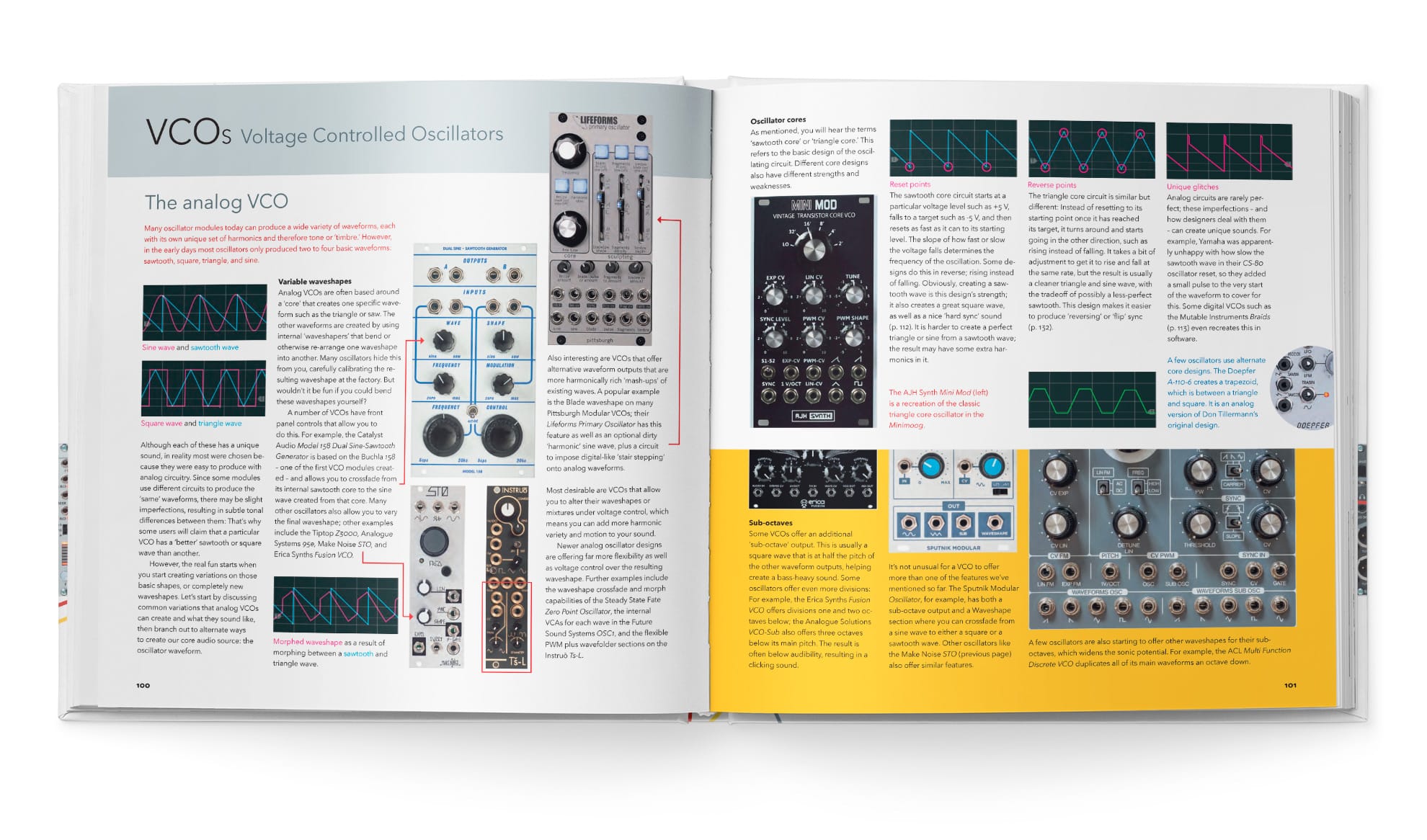 When I [Kim] first got into modular synthesis, I found that the books available were outdated – black-and-white, with no illustrations, and not covering the modern modules or music styles people use today.