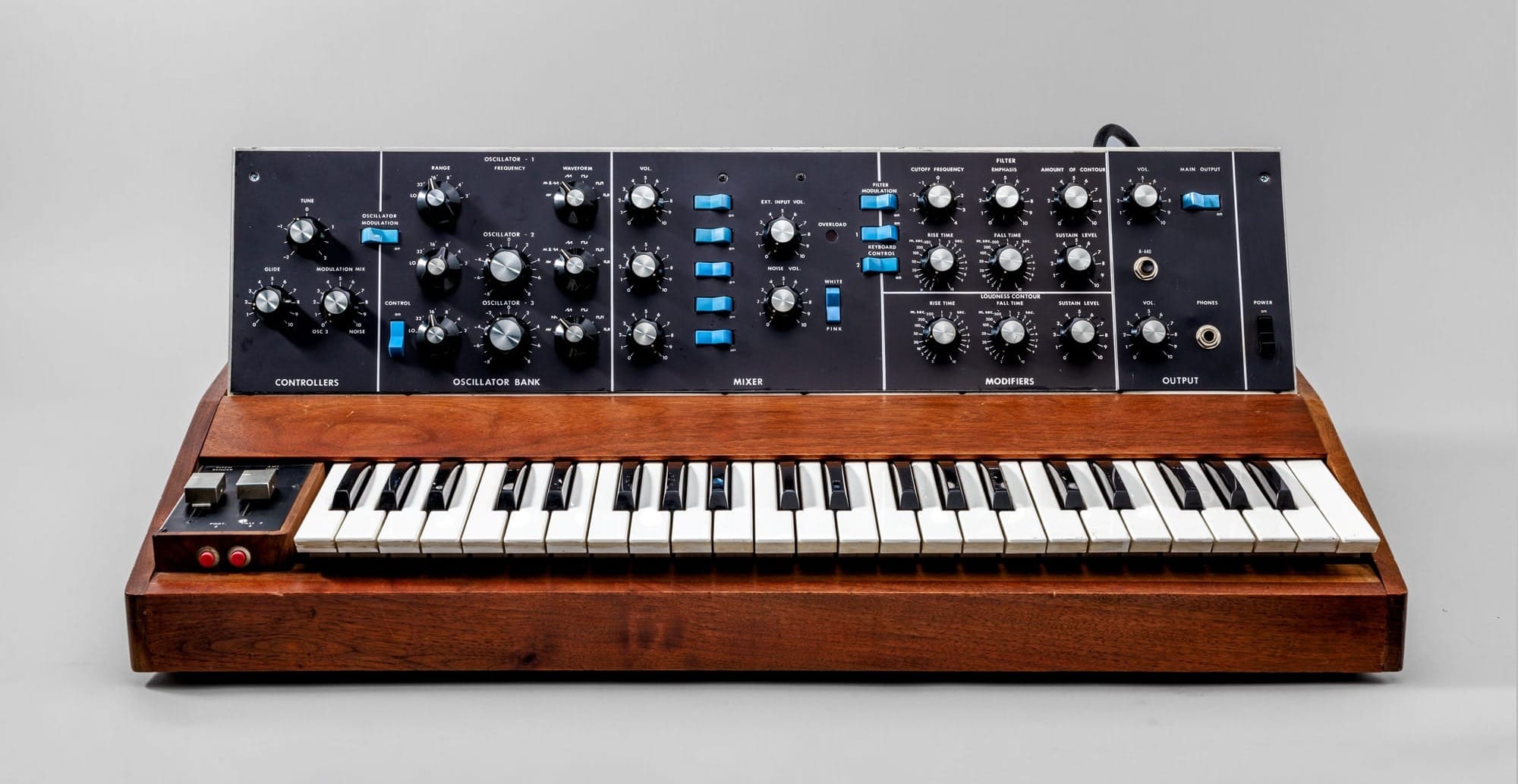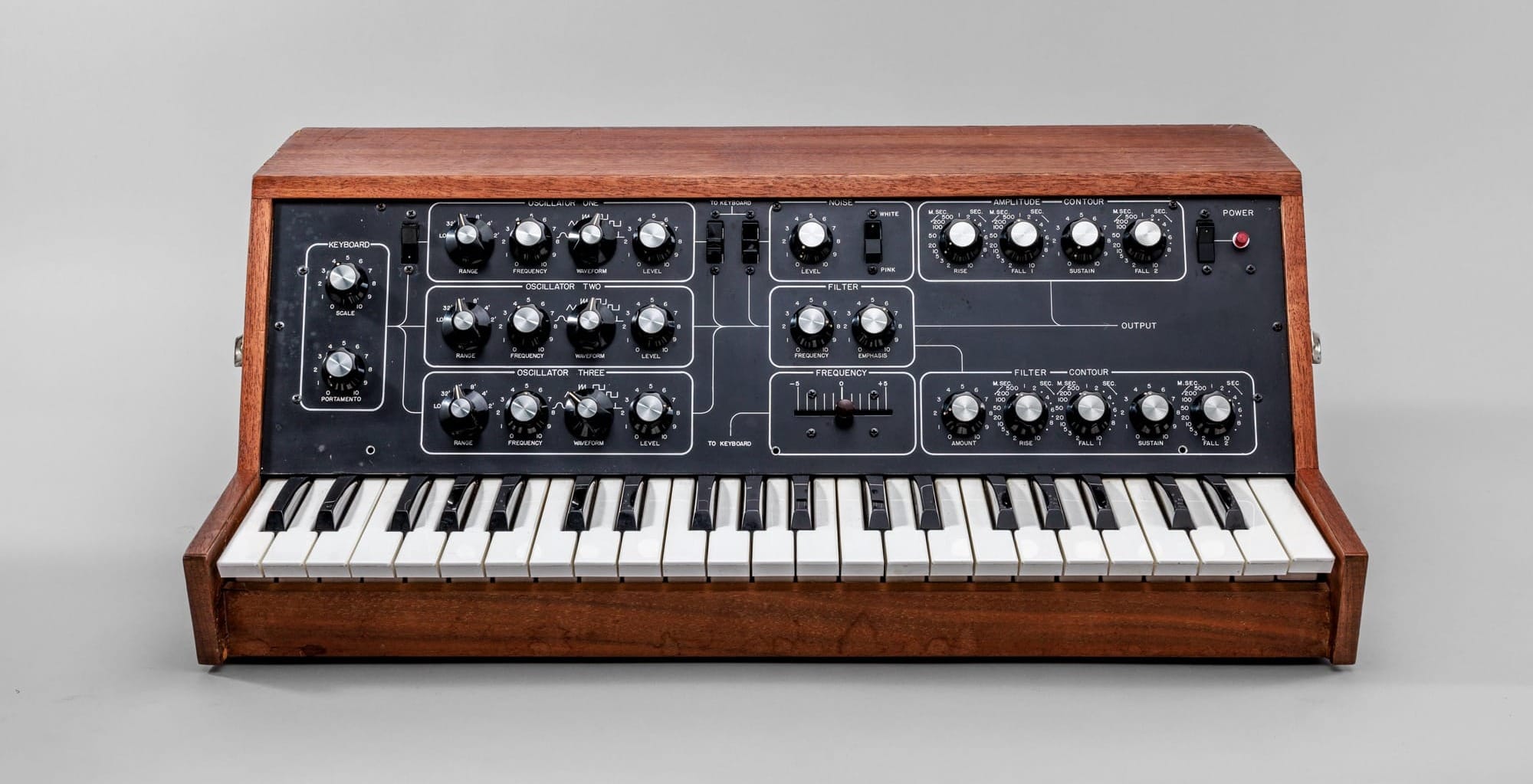 Visually, this new iteration of the Min was a considerable leap forward. Bill laid out the controls in an extremely logical way that emphasised the signal-flow structure. The design now featured three oscillators with six switchable waveforms, each with individual controls for range, frequency, and audio level. A noise circuit delivered either pink or white noise, and two contour controls for amplitude and filtering mapped out the stages of the envelopes in milliseconds. As a technical footnote, the Min B was the only Minimoog to feature four-stage ADSR envelopes – a format that would later become standard on most synthesizers.
